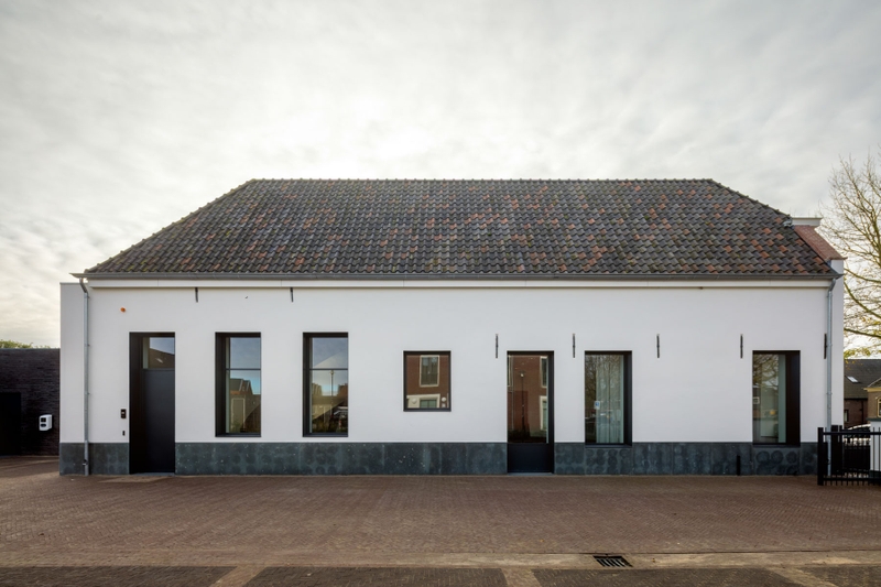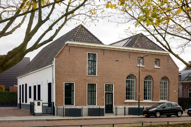 Dit gemeentelijke monument — een van de oudste gebouwen van de gemeente Bunschoten — raakte na eerdere functies als kerk, school, garage en winkelruimte in verval. Dat vormde het startpunt voor deze restauratie en renovatie. Na een uitgebreid bouwhistorisch onderzoek is in overleg met de gemeente en monumentenzorg vastgesteld welke onderdelen behouden moesten blijven en welke aangepast mochten worden. De oorspronkelijke kapconstructie is een mooi voorbeeld van een element dat bij de restauratie zorgvuldig bewaard is gebleven.